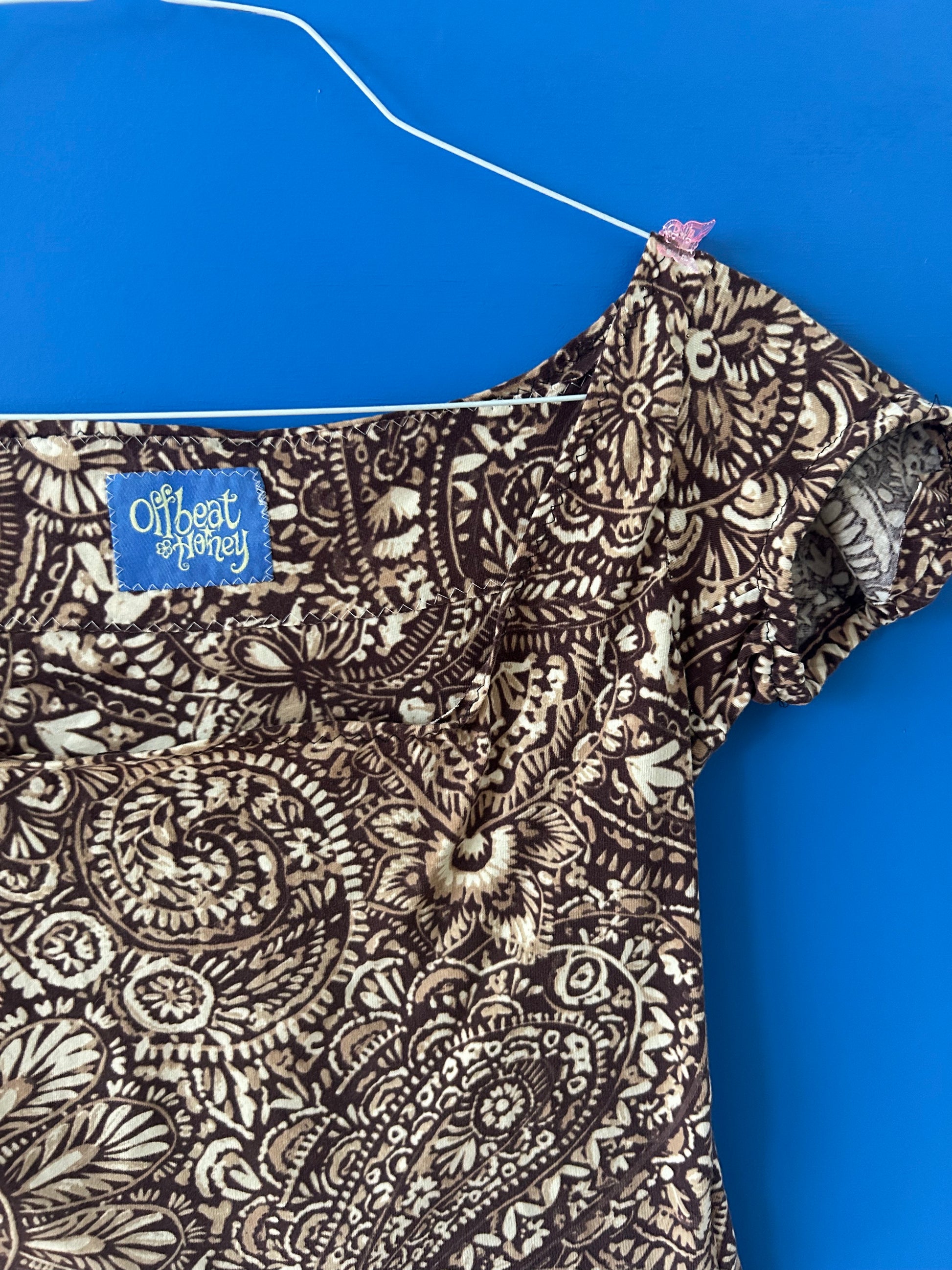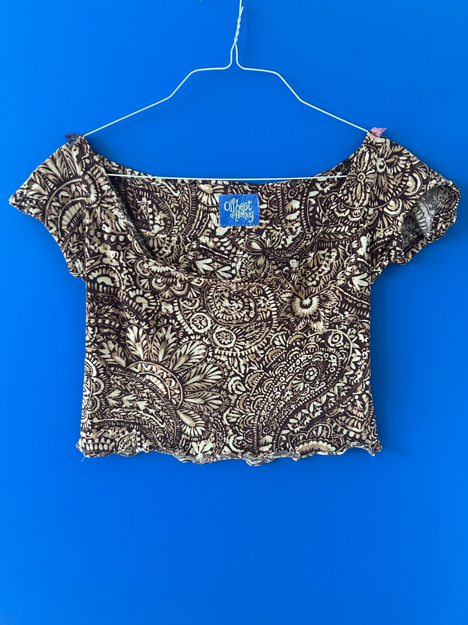 Short-sleeved blouse, re-worked from vintage Y2k thrifted top.