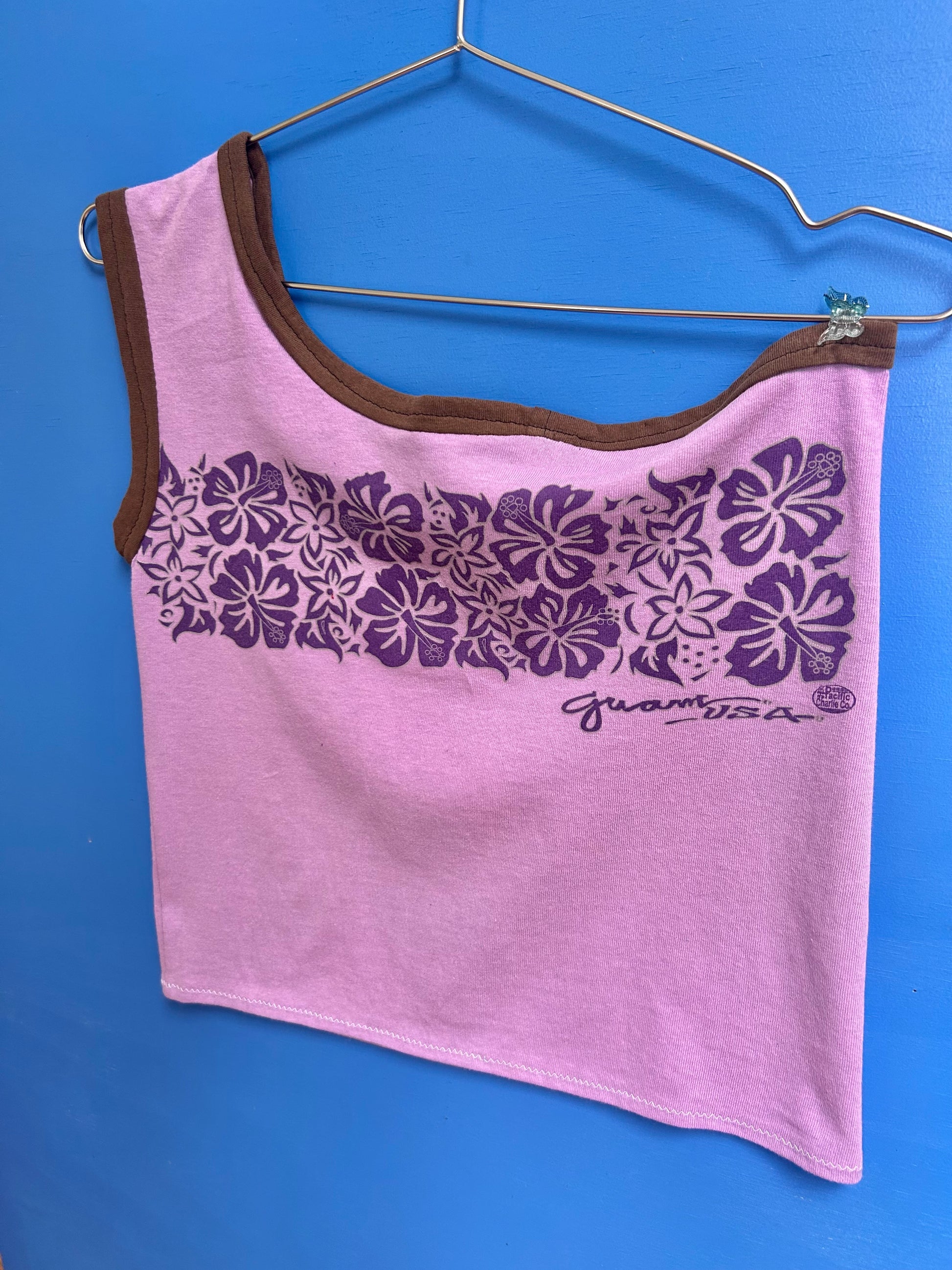 Asymmetrical one-shoulder, y2k style tank handmade from scratch using vintage tee shirt and recycled fabrics.