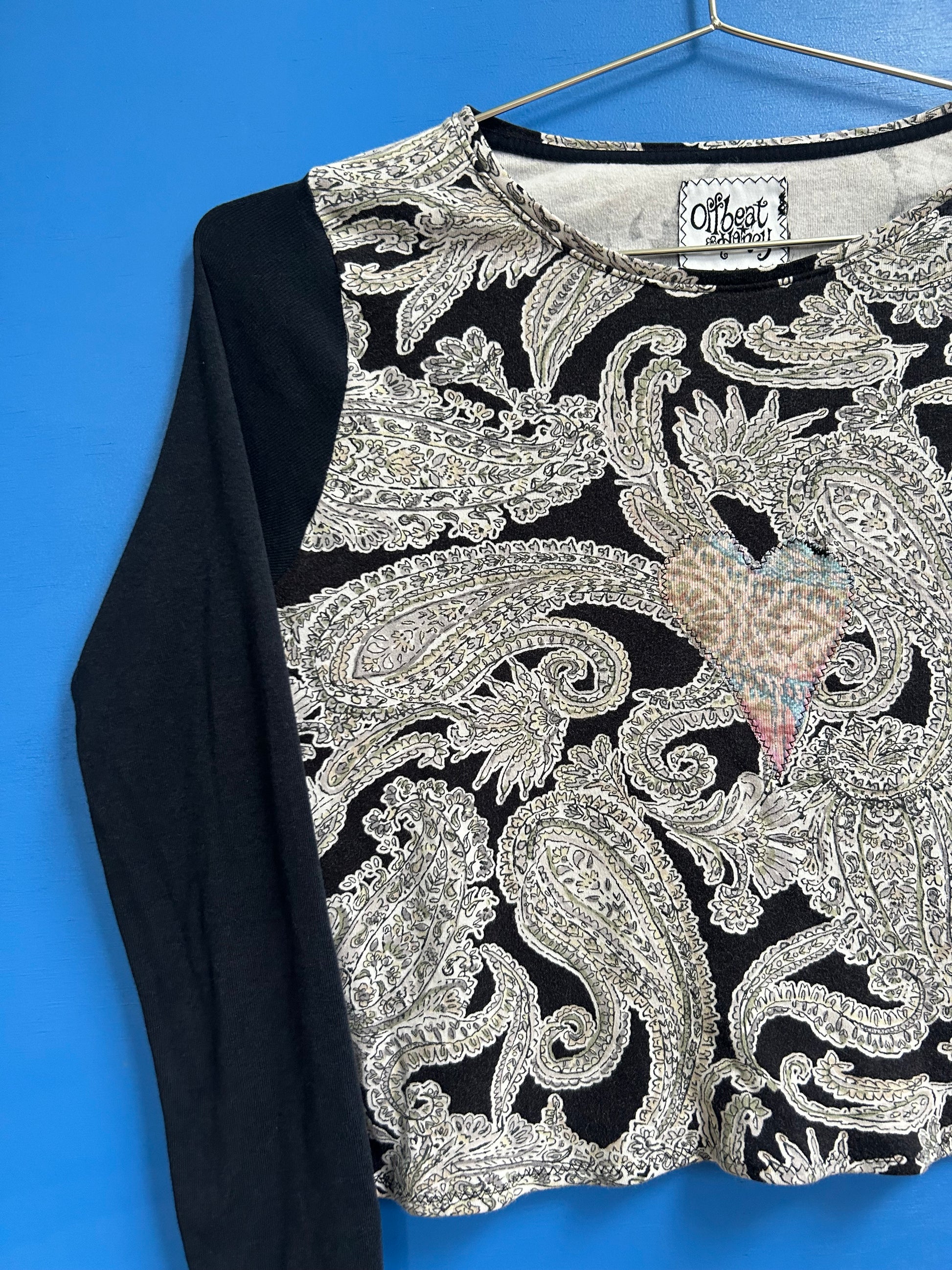 Re-worked vintage shirt colorblocked with vintage dark navy sleeves.