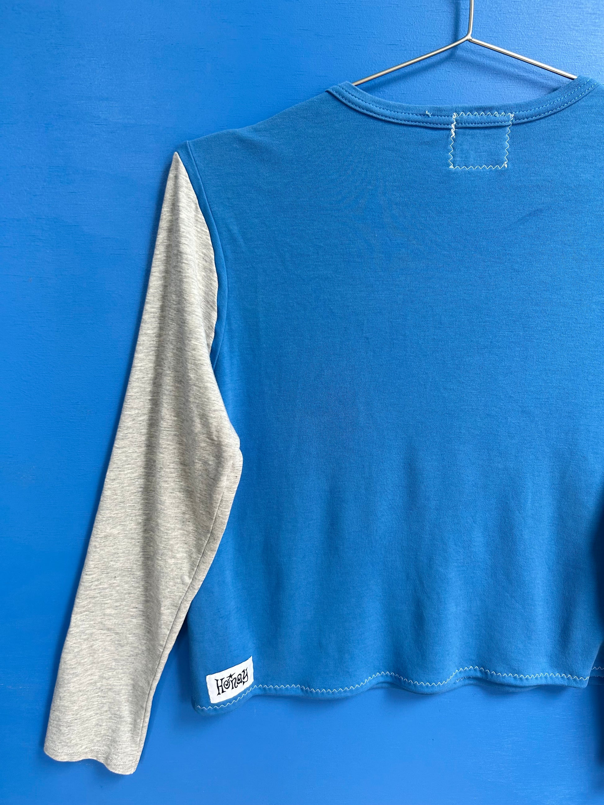 honey patch sewn onto bottom back of shirt