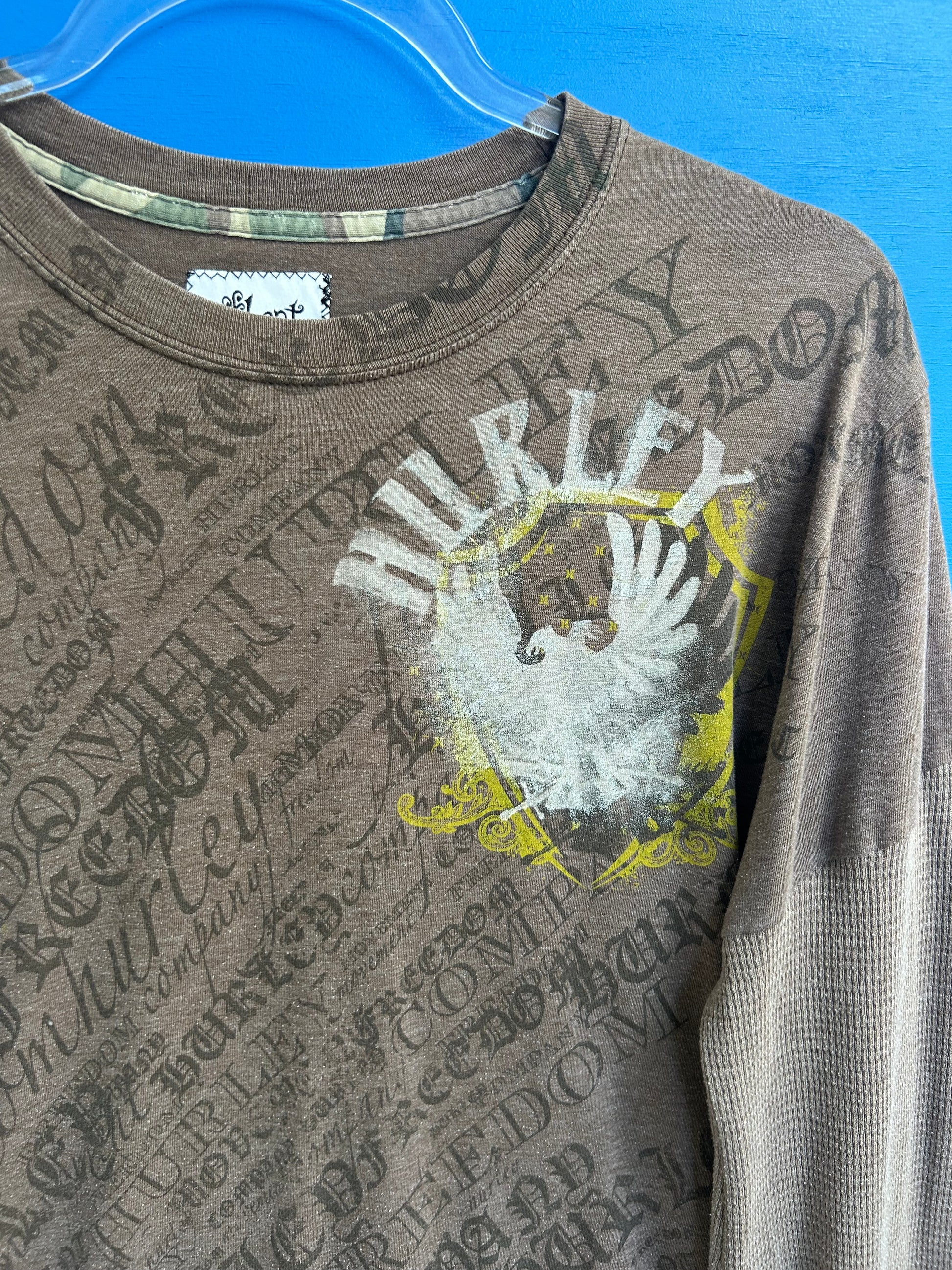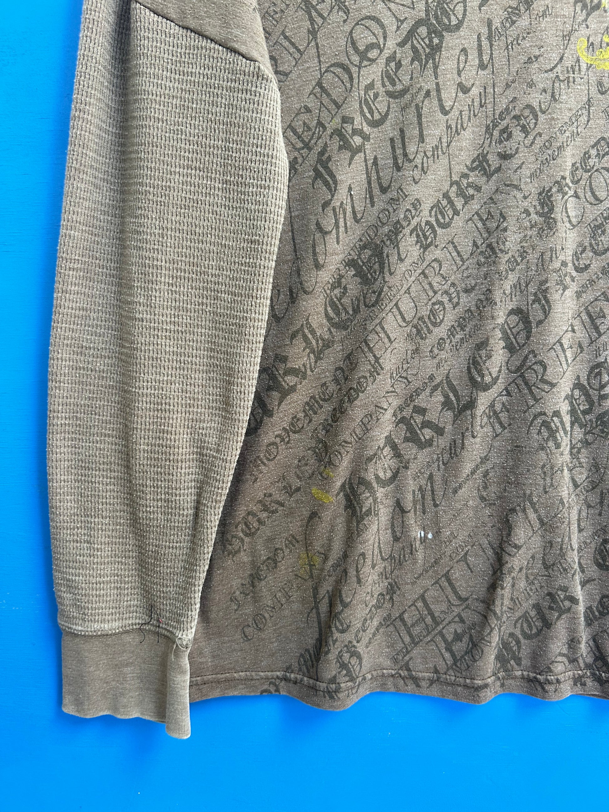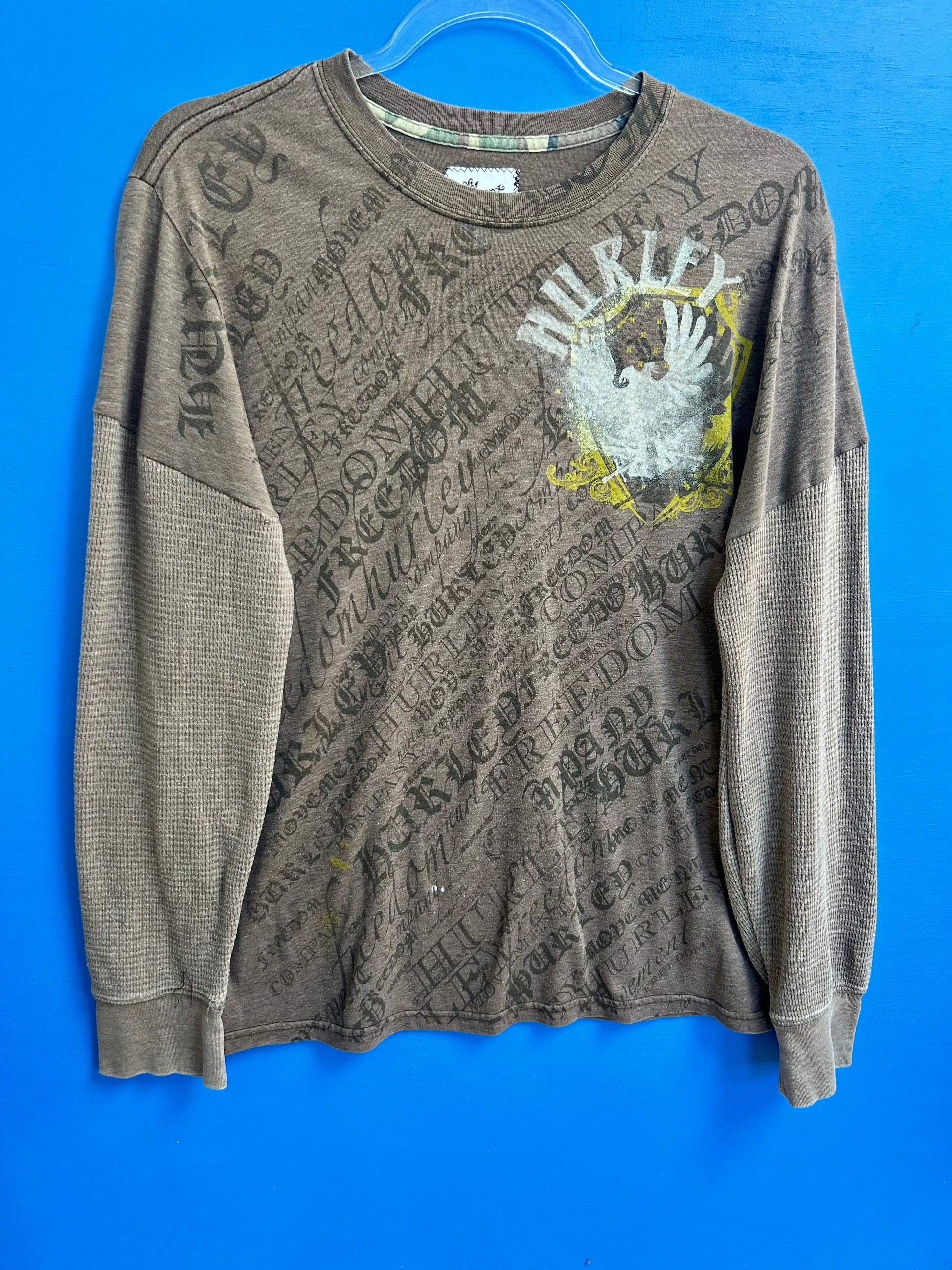 Re-worked vintage Hurley tee with sewn on waffle long sleeves.