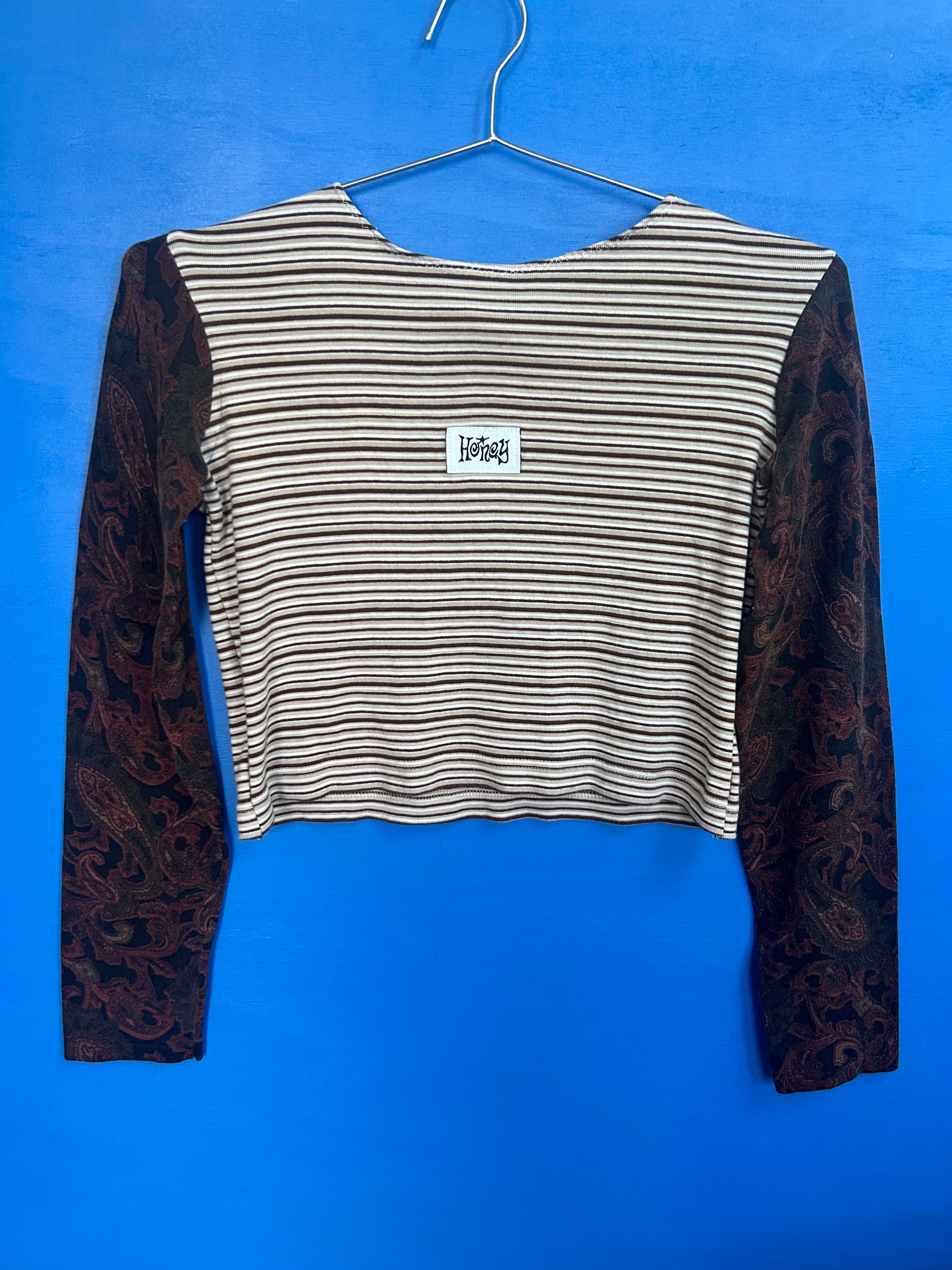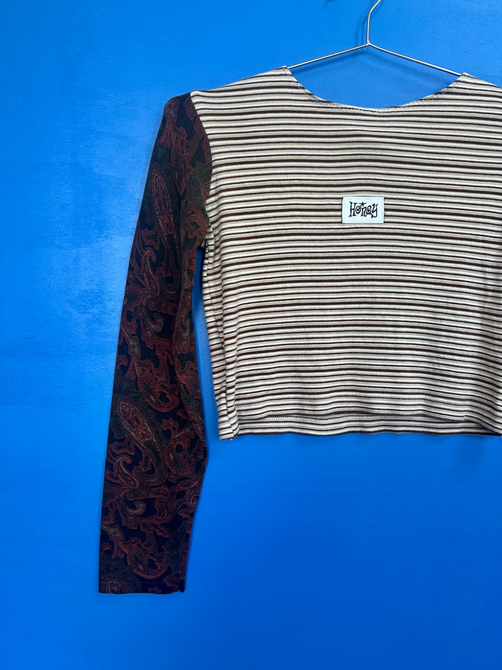 Re-worked vintage striped shirt with colorblock sleeves from vintage brown boho sleeves.